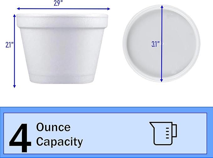 • Mr. Miracle 4 Ounce Foam Containers are made from high quality insulated foam. These containers are comfortable to hold in hands and at the same time it ensures an optimal serving temperature for any dish or serving. Ideal to serve smaller portions of Ice Cream, FroYo, Soup, Stew, Chips, Nuts, Vegetables or Fresh Fruit, and by using the vented lid you can ensure safe transportation.